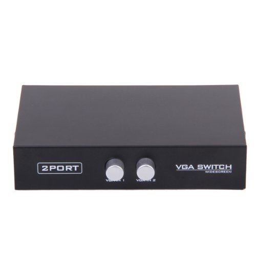 This is 2 in 1 out VGA sharing switch, which enables two computer to share one monitor, projector, or conversely, two monitors / projectors to share one computer. It also allows two DVDs with VGA ports to share one monitor, LCD or Plasma TV set, easy to install and operate, just press the buttons manually.