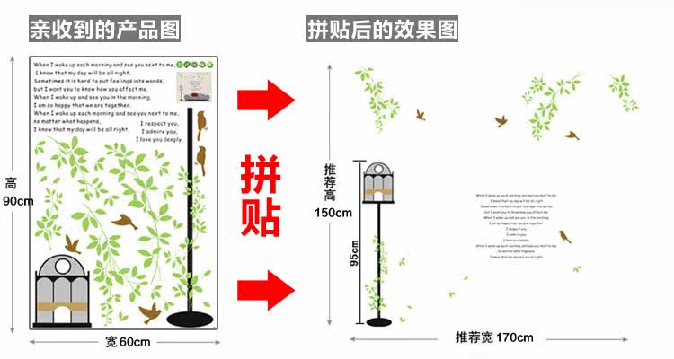 Sizes, "you receive the goods and typesetting" size and "collage after size reference"