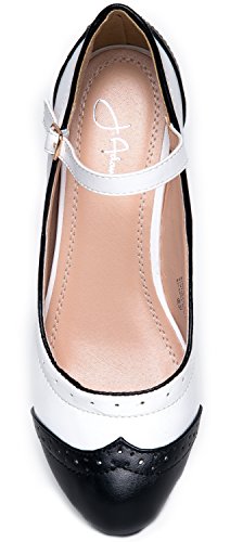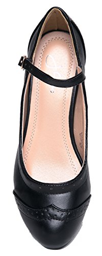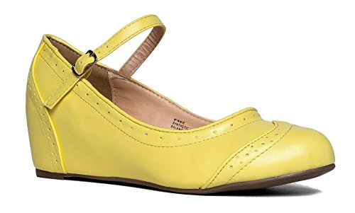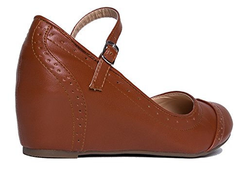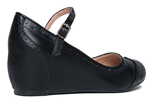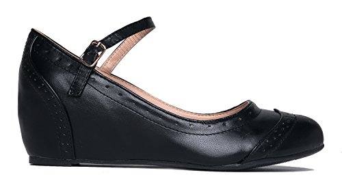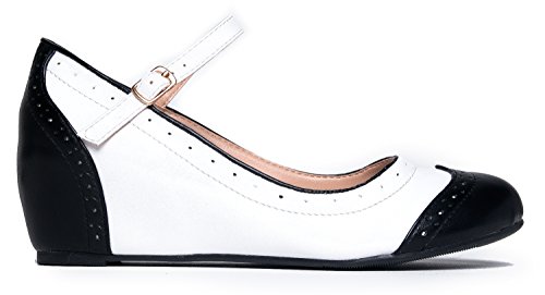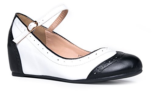 | Ankle Strap Mary Jane Wedge - Low Round Toe Retro Shoe - Cute Vintage Oxford Heel - Minnie by J... |