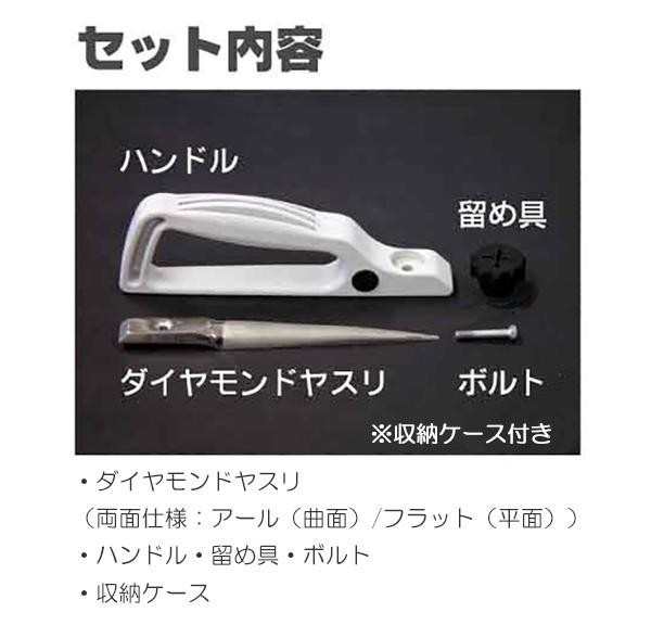 | セット内容 | ハンドル本体 ダイヤモンドヤスリ 留め具 ボルト 収納ケース 取扱説明書 保証書(保証期間:1年間) |
