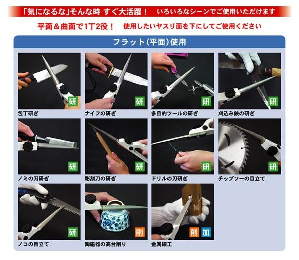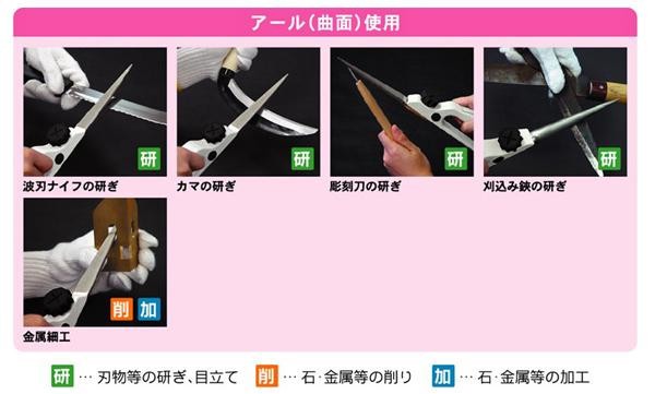 | 両面仕様!多彩な刃物類、農耕具の刃付けが可能なハンドやすり。 |