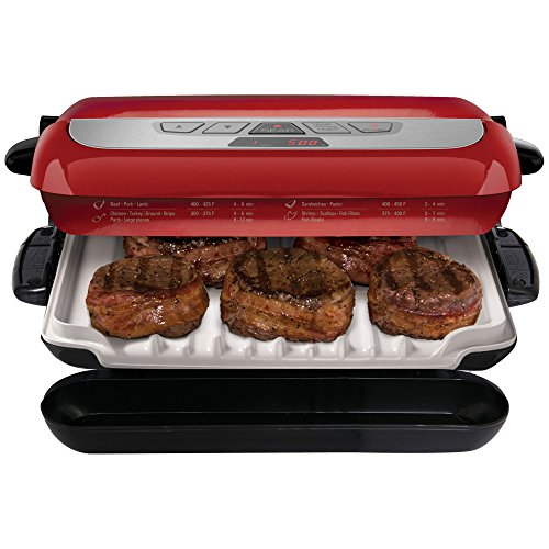 Remove 42% of Fat- The classic George Foreman Grill slope removes up to 42% of fat during cooking, conveniently draining grease into the dishwasher-safe drip tray. Plus, the nonstick ceramic surface allows you to skip the excess butter and oil in your cooking, further reducing the fat content without sacrificing the foods you love