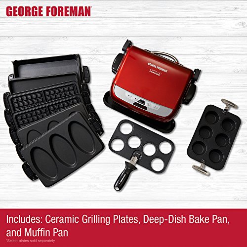 Evolve 4-in-1 Versatility- Grill, Panini Press, Bake Dish, Muffin Pan. The Evolve is designed for maximum cooking versatility. This model includes ceramic grill plates (for grilling and Panini pressing), a bake dish (for baking, sautéing, and griddling), and a muffin pan (for muffins, single-serve quiches, meatballs, and more.) Additional plate types for the Evolve are available for purchase