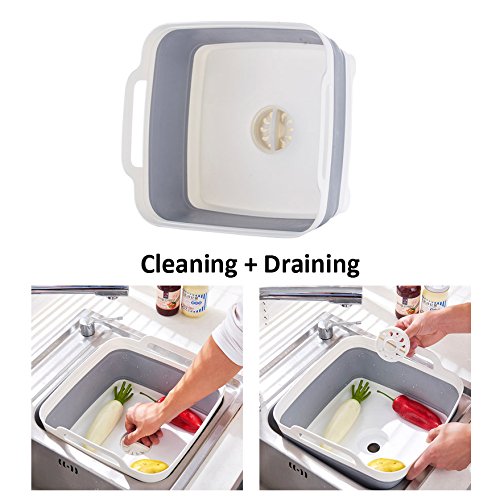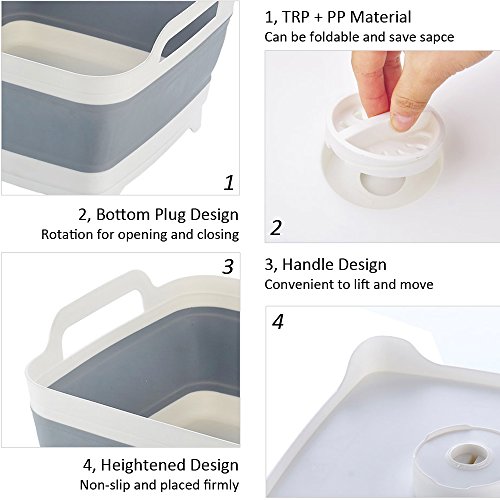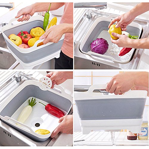 ✓One Basket for Different uses - Foldable dish tub & storage + fruit and vegetable washing & drainer + kitchen supplies storage;