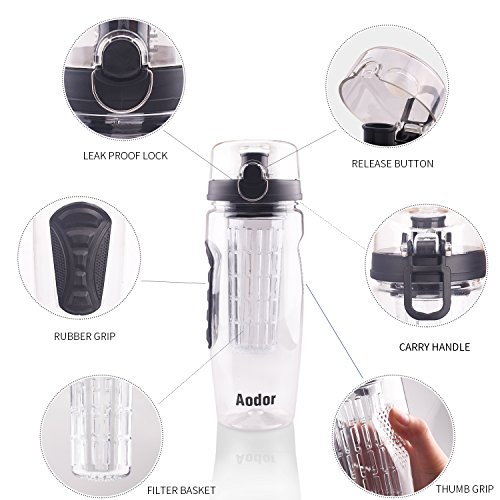 -. Title : Aodor Fruit Infuser Water Bottle - Large 32 oz - Create Delicious Fruit Infused Water (Juice, Iced Tea, Lemonade and More ) - Leak Proof & BPA Free Tritan Plastic - Best Gift for Sports Traveling