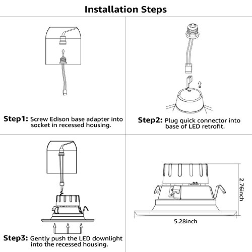 Easy install with E26/E27 base adapter, fit most 4" recessed housings, ideal for new construction or remodel in general lighting