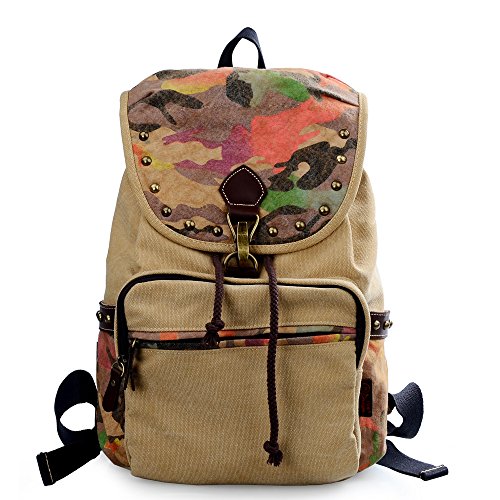 -. Feature : From shopping to a hike in the woods, the Douguyan backpack blooms with possibilities for everyday use / Camo pattern and stud detailing adores, drawstring closure covered by the flap with good quality hardware for security / Front zip compartment and side slip pockets for additional storage, inside laptop sleeve can hold up to a 10 inch equipment / Main compartment is roomy enough for your books, notebooks and magazines. Features an interior zippered pocket for secure storing. / Please note that the backpack you receive may differ slightly from the item shown in the picture due to the multi-colored nature of the camouflage pattern