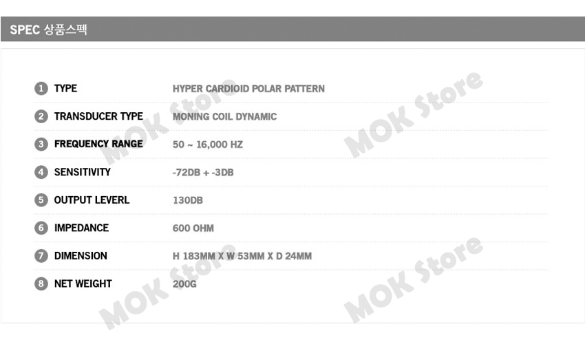 - Type : Hyper Cardioid polar pattern
