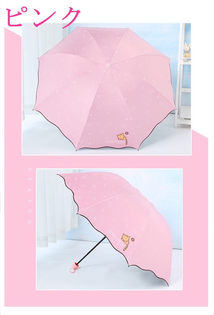 ●商品写真はできる限り実物の色に近づけるよう加工しておりますが、お客様が使用するパソコンのモニター設定や部屋の照明により多少、色の変化が感じられる場合がございます。予めご了承ください。3段折りたたみ式で持運びにもとっても便利。紫外線を防いで、肌を守りましょう!撥水・耐風性能のあるかわいい晴雨兼用日傘。★重量:約300g ★製造:中国★骨の本数:8本★カラー:写真参考★使用時サイズ(直径):約98cm★収納時サイズ(全長):約28cm※サイズ違いやイメージ違いによる変更もお受け致しかねますのでご了承ください。