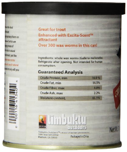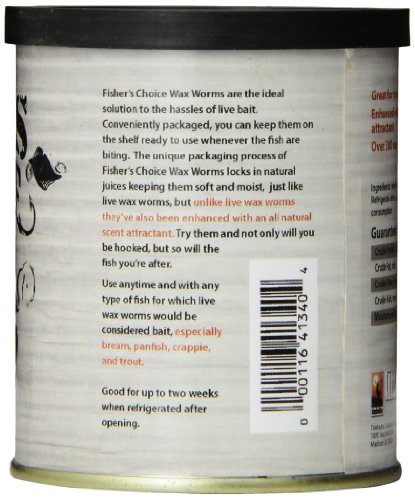 Studio : Seachem Laboratories, Inc. Publisher : Seachem Laboratories, Inc. Binding : Misc. Product Description Fisher's Choice canned baits go through a retortion, or sterilization process that technically 'cooks' the bait without cooking it; this results in a texture that remains soft but slightly more firm than live bait. This allows for enhanced durability when fishing, more casts, and, in the case of crickets, more whole crickets and less broken off cricket legs. The unique packaging process of Fisher's Choice locks in natural juices, keeping the baits soft and moist, just like live bait. However, unlike live bait, they've also been enhanced with an all-natural scent attractant. 0