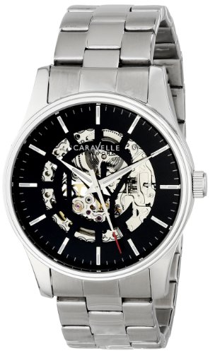 -. Binding : Watch -. Brand : Bulova -. Color : Silver/Black -. Department : mens -. EAN : 0042429513730 -. Feature : Round watch in stainless steel with three-link band and skeleton dial featuring logo initials at center / Japanese automatic movement with analog display / Protective mineral crystal dial window / Features fold-over clasp with double push-button safety closure / Water resistant to 99 feet (30 M): withstands rain and splashes of water, but not showering or submersion -. Label : Caravelle New York -. Manufacturer : Caravelle New York -. Model : 43A124 -. MPN : 43A124 -. PackageQuantity : 1 -. PartNumber : 43A124 -. ProductGroup : Watch -. ProductTypeName : WATCH -. Publisher : Caravelle New York -. ReleaseDate : 2014-09-30 -. Size : Standard -. Studio : Caravelle New York -. Title : Caravelle New York Men's 43A124 Stainless Steel Automatic Watch -. UPC : 042429513730