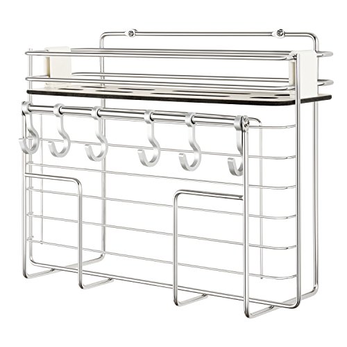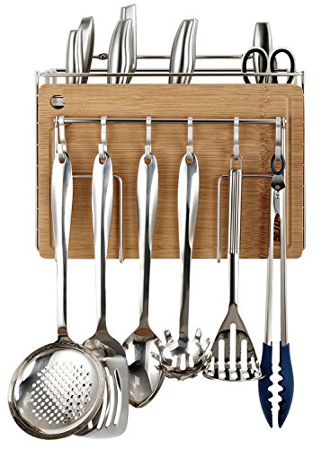 Miusco Cooking Utensil & Cutting Board Holder, Wall Mount, Stainless Steel, Compact Kitchen Organizer