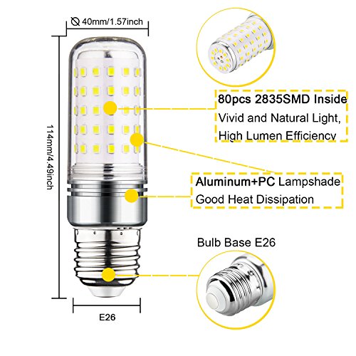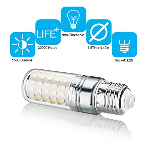 - ☞ Excellent Performance→Non-Dimmable LED Candelabra Bulb,E26 Candelabra Base, Tubular Shape, White 6000K,1500 Lumens, 80pcs 2835SMD Inside, Light Pattern Same as Incandescent Bulbs
