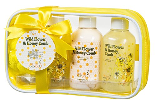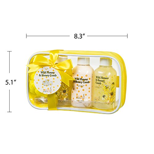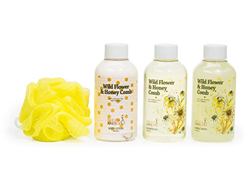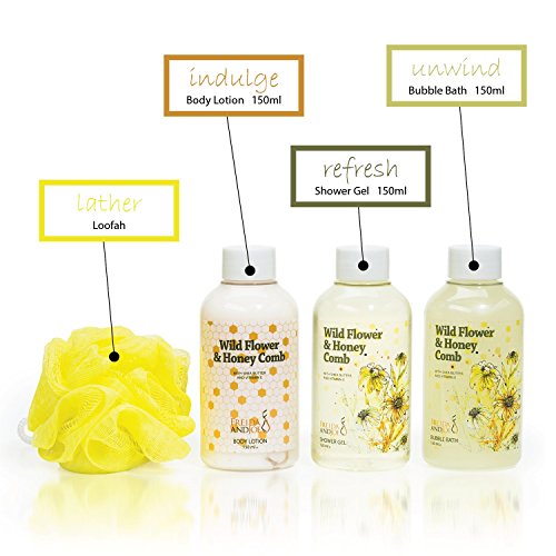 : Sensational Wild Flower and Honey Comb Gift Set: Summer Fields Home Spa for Women Bathroom Kit with Shower Gel, Bubble Bath, Body Lotion, and a...