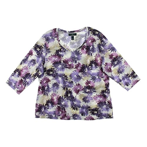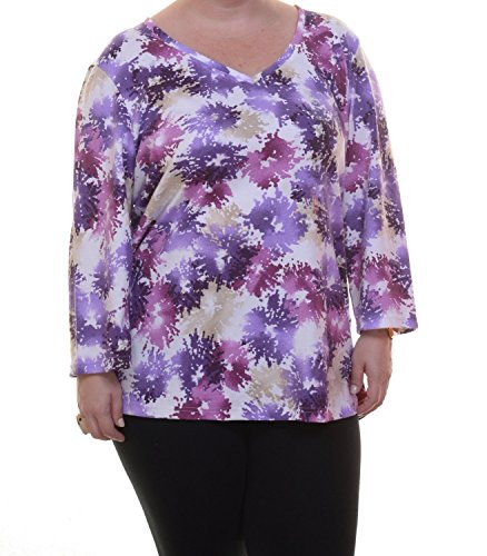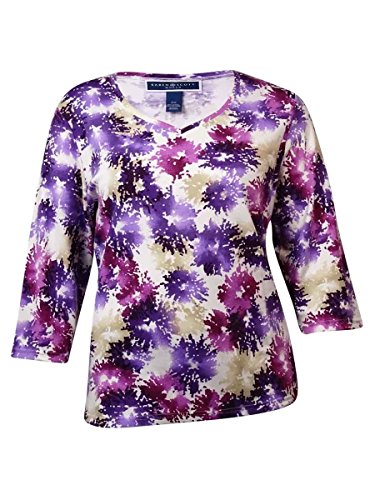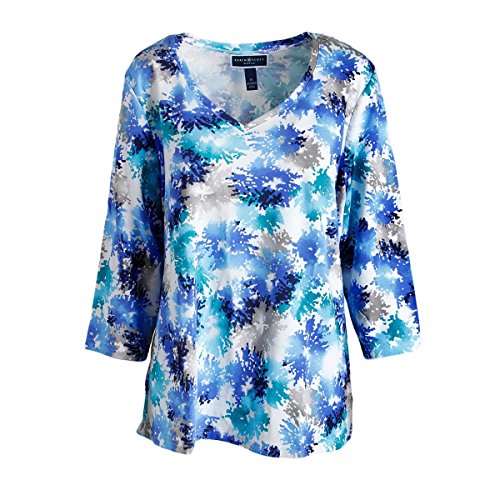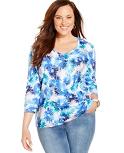 karen scott women printed three quarter sleeve top plus size 3x deep pacific cotton/polyester machine washable imported v-neckline pullover style three quarter sleeve allover print hits at hip