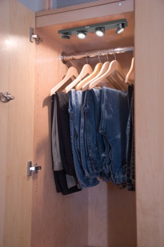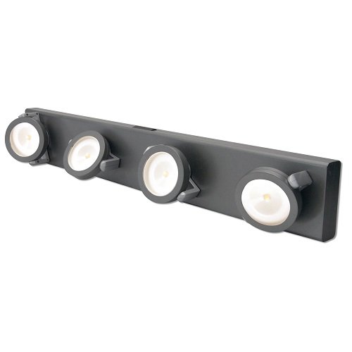 - Battery-operated under-cabinet track light with super-bright white LEDs