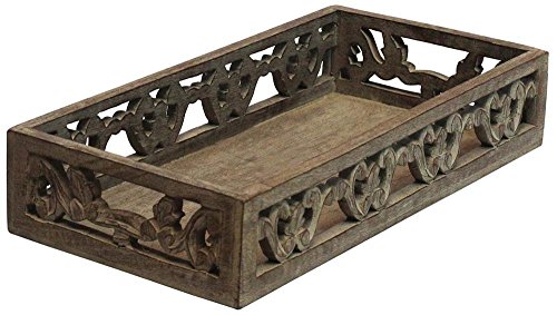 SouvNear HandCarved Wooden Serving Tray with Handles - 14 Inches Large Dark Brown - Decorative Vintage Look Service Trays for Tea, Coffee, Breakfast, Ottoman Tray