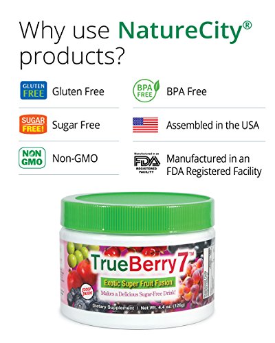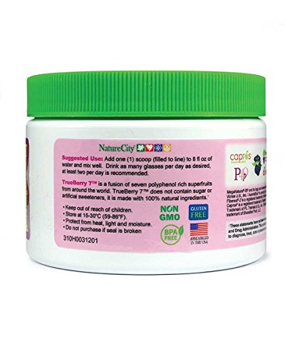 TrueBerry7TM combines seven "Best in Class" super fruit extracts into a nutritious powder mix that makes a great tasting drink when you add to 6oz to 8oz of water (you can adjust water amount to taste your preference). It also contains 2 grams of soluble fiber per serving.