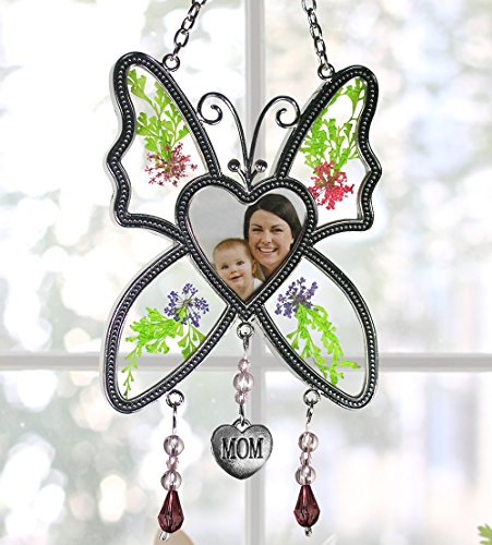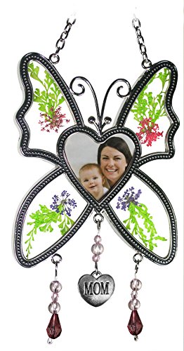 - GIFTS FOR MOM. This unique glass butterfly sun catcher with pressed, dried embedded in the wings. Engraved silver mom charm and place to put a picture of you and your mom. What a reat gift for Mother's Day or your mom's birthday.