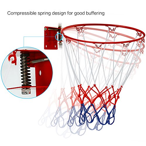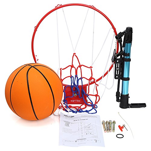 Pellor Children Kids Solid Basketball Ring Hoop Net with Rubber Ball and Wall Mounting Bracket (Red/White, Hoop: 32cm/12.6")