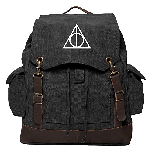 Deathly Hallows Harry Potter Vintage Canvas Rucksack Backpack w/ Leather Straps