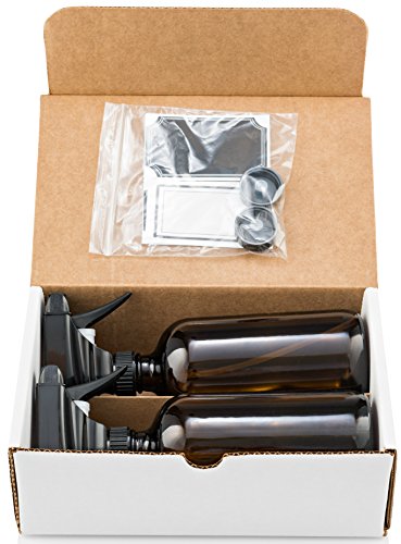 - ✓YOU GET 2 beautiful UV protectant brown amber glass 16 ounce bottles. 2 BPA free Trigger Sprays made in the USA that have 3 settings (wide mist, stream & a off/locked position). Superior spray nozzles are high-end (more powerful than most competitor brands 1.3cc output vs .9cc). They are elegant, reliable & sturdy. Will not clog or leak. You also get 2 phenolic caps, 2 chalk labels & 2 waterproof white labels.