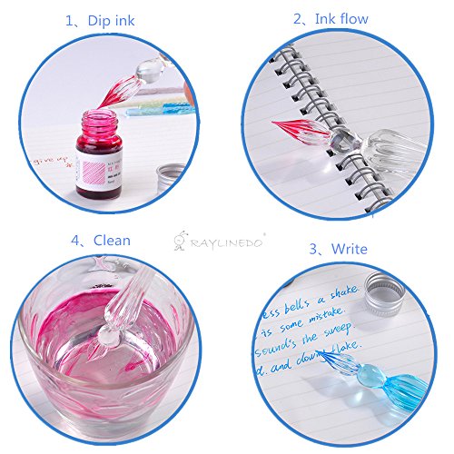 - The glass dip pens with vintage,simple,unique,and exquisite beauty style. Retain the original classic pen tip design, the ink evenly. Once dipped in ink can be mantained about 20-40 words. Just need one pen, you can write all kind of color art.