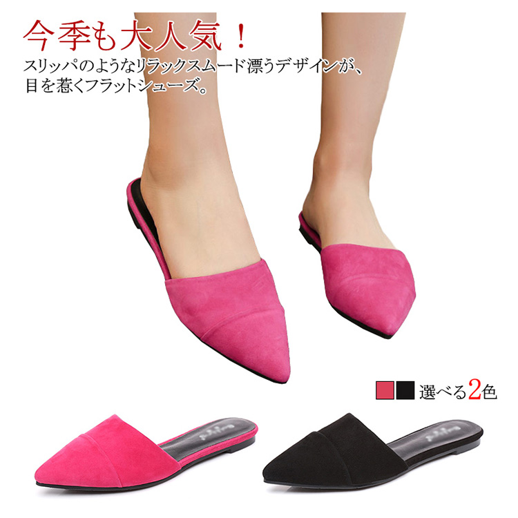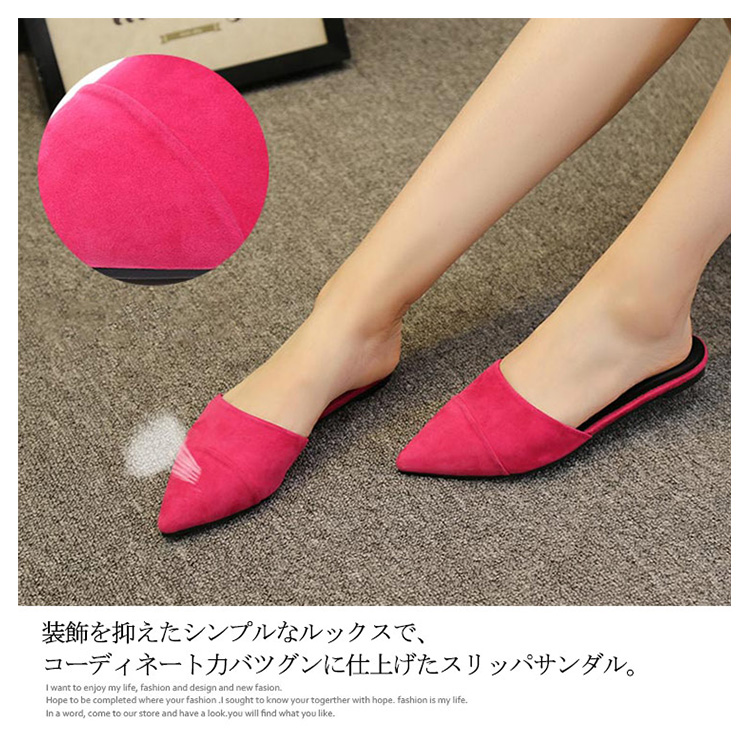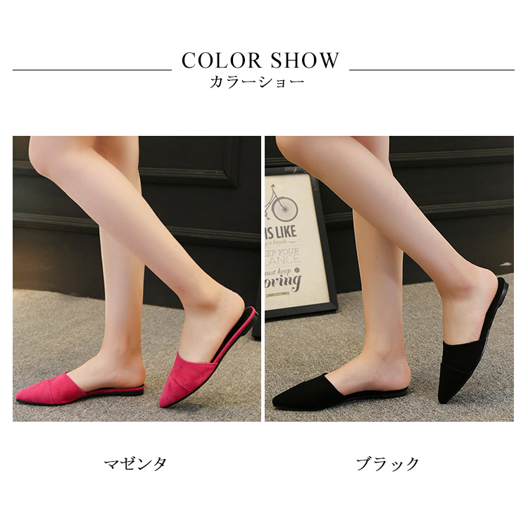 | スリッパのようなリラックスムード漂うデザインが、目を惹くフラットシューズ。今季も大人気!ポインテッドトゥですっきりとした印象に!デニムやワイドパンツなど、いつものコーディネートもよりおしゃれに進化!!装飾を抑えたシンプルなルックスで、コーディネート力バツグンに仕上げたスリッパサンダル。 | |