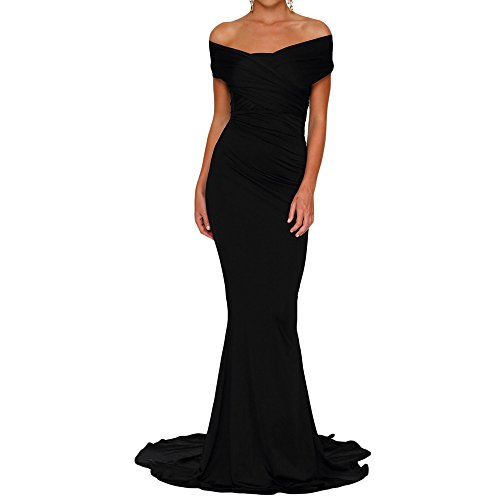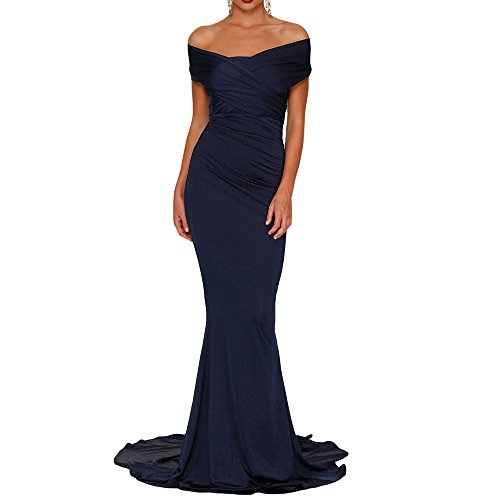 Off shoulder and mermaid hem accent the feminine style,