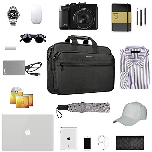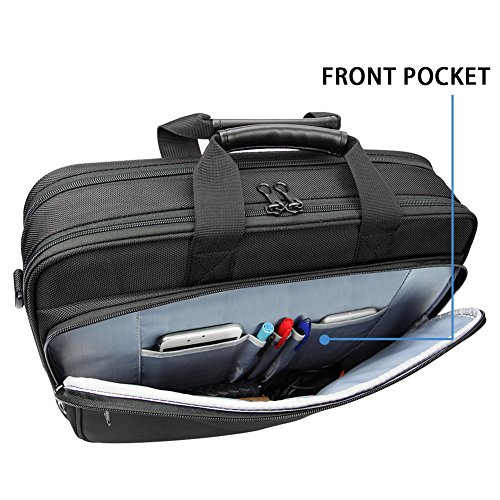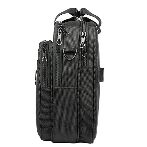 -. Feature : Material: Water-Repellent 1680D Ballistic Fabric; Dimensions: 16.6"x12.2"x5"; Weight: 1.98LBS. Organizer briefcase dimensions fit up to 15.6 inch laptop. / Multifunctional compartment: Roomy compartments can provide separated space for computer, iPad, A4 files, pens, wallet, keys and more your items. Padded laptop compartments are made of high quality comfortable fabric, features a thick foam padding laptop compartment with velcro closure protecting your computer from accidental bumps and shocks. / Durable and high quality material: The laptop case is made of good 1680D ballistic fabric with new function of water-repellent, which is quite durable. / Comfortable and compatible design: Removable and adjustable padded shoulder strap and PU leather handles offer you comfort carrying for a long time. / Great convenience: A well-knit luggage belt is quite convenient for you to fix the laptop bag on the trolley of your luggage, making your journey and travelling more convenient wherever you go.