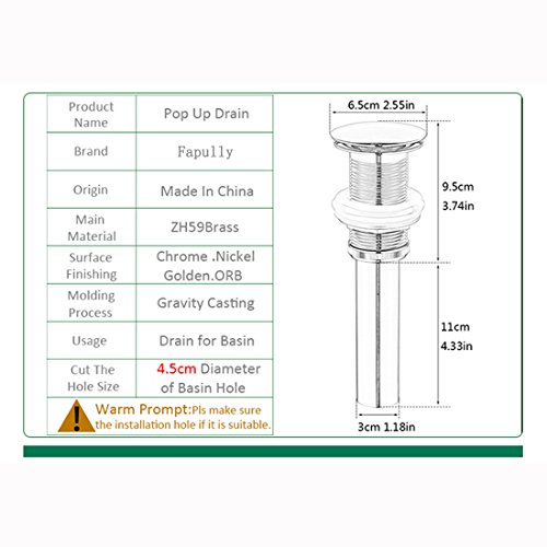 Fapully 100408C Pop Up Drain without Overflow Bathroom Sink Drain,Chrome
