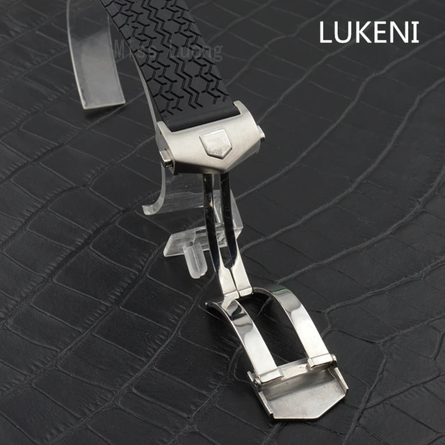| [해외]Lukeni 22 미리메터 블랙 실리콘 고무 시계 스트랩 벨트 손목 태그 까렐 heuer 시계 팔찌 버클 로고 |