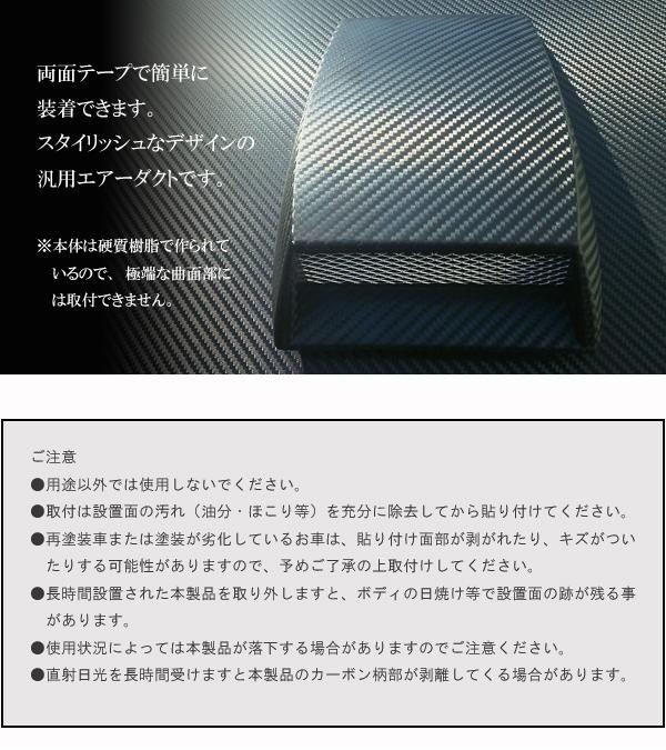 本物志向のカーボン柄とアルミメッシュを採用。スタイリッシュな汎用エアーダクトです。本体に付いている両面テープで簡単に装着できます。