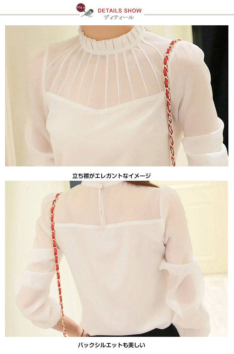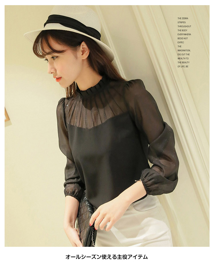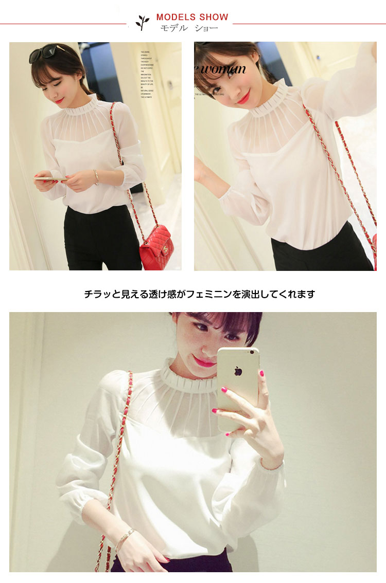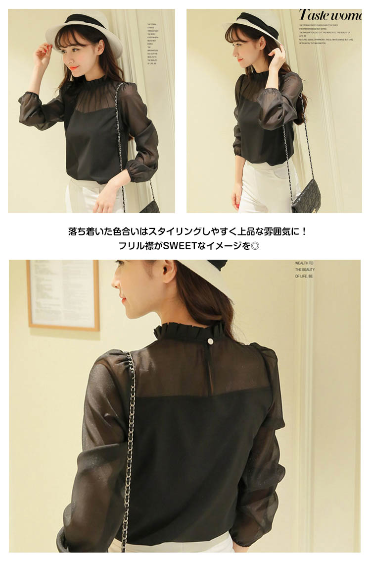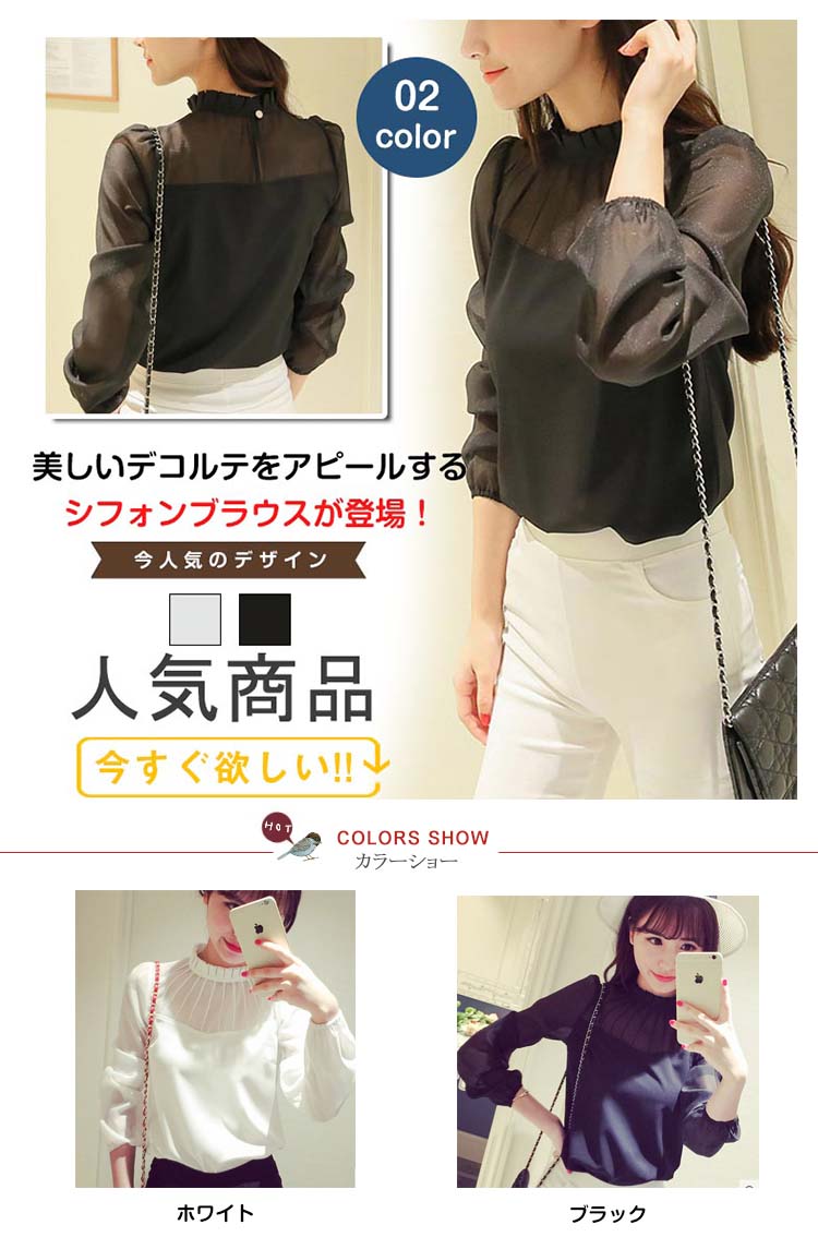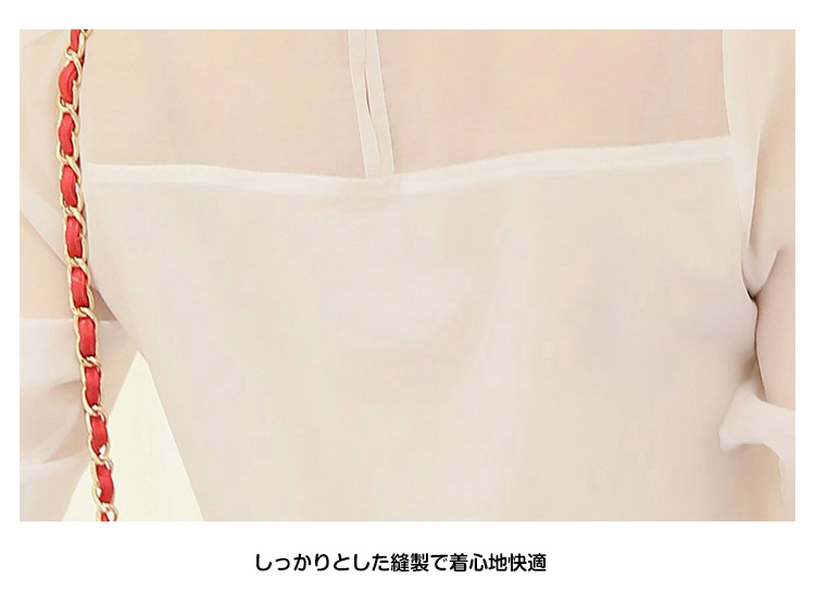 | 美しいデコルテをアピールするシフォンブラウスが登場!チラッと見える透け感がフェミニンを演出してくれます落ち着いた色合いはスタイリングしやすく上品な雰囲気に!フリル襟がSWEETなイメージを◎オールシーズン使える主役アイテム | |