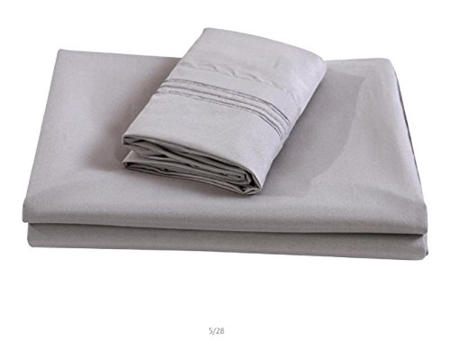 All American Collection New Soft, Bamboo Feel, Microfiber 4 Piece Embroidered Three Line Sheet Set