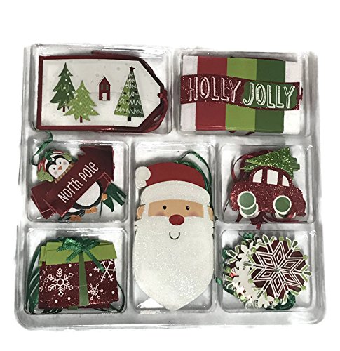 Product Description Add a beautiful finishing touch to all of your packages. 40 tags with handmade attachments and glitter or goil embellishments will make a wonderful additional to any gift. Each tag includes ribbon or string for easy attachment to a package or they can be used as a Christmas ornament for a second use for the avid recycler. 40 Count Deluxe Holiday Gift Tags 40 Tags with embellishments such as glitter, foil or hand made attachments 7 different designs in clamshell storage container Includes ribbon or string for attaching to your gifts 0