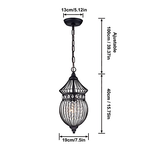 Crystal Chandelier Lighting BirdCage Black Wrought Iron 1 Light Chandelier Light Fixture 17045