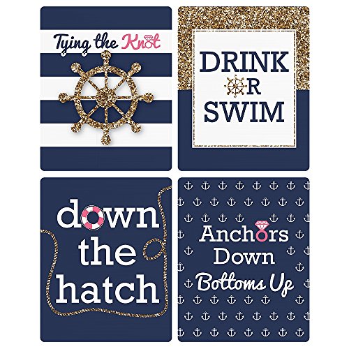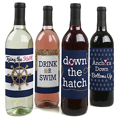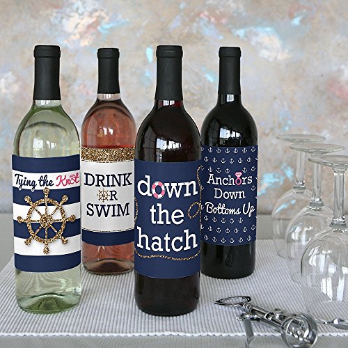 Last Sail Before The Veil - Nautical Bridal Shower & Bachelorette Party Wine Bottle Labels - Set of 4