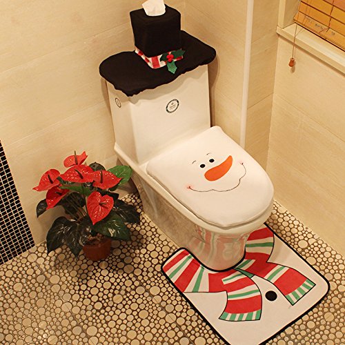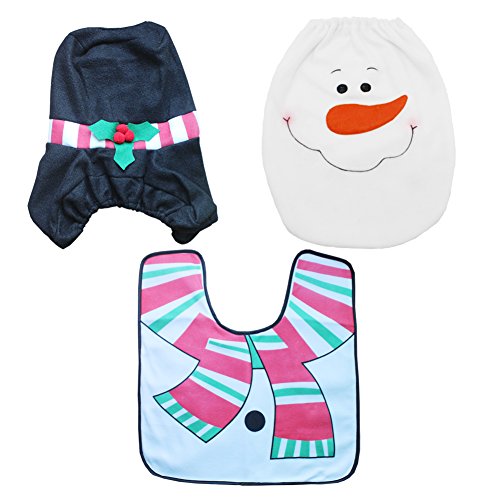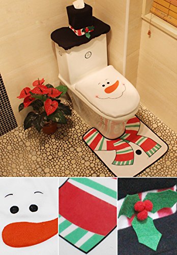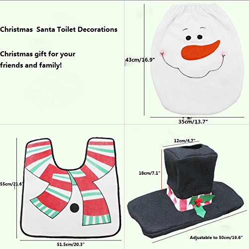 2EYOU Christmas Snowman Santa Toilet Seat Cover and Rug Set for Christmas Party Decoration,Set of 3.