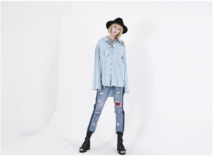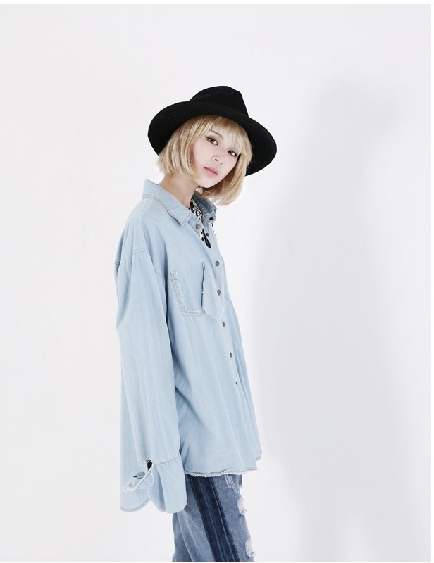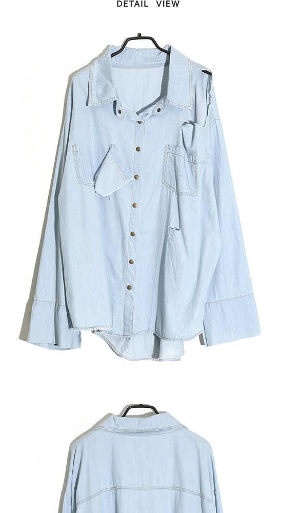 商品名:シャツ レディース デニムシャツ 長袖 春 2018 モード系 個性的 40代 ファッション