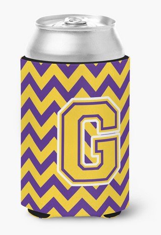Caroline's Treasures CJ1041-GCC Letter G Chevron Purple and Gold Can or Bottle Hugger, Multicolor
