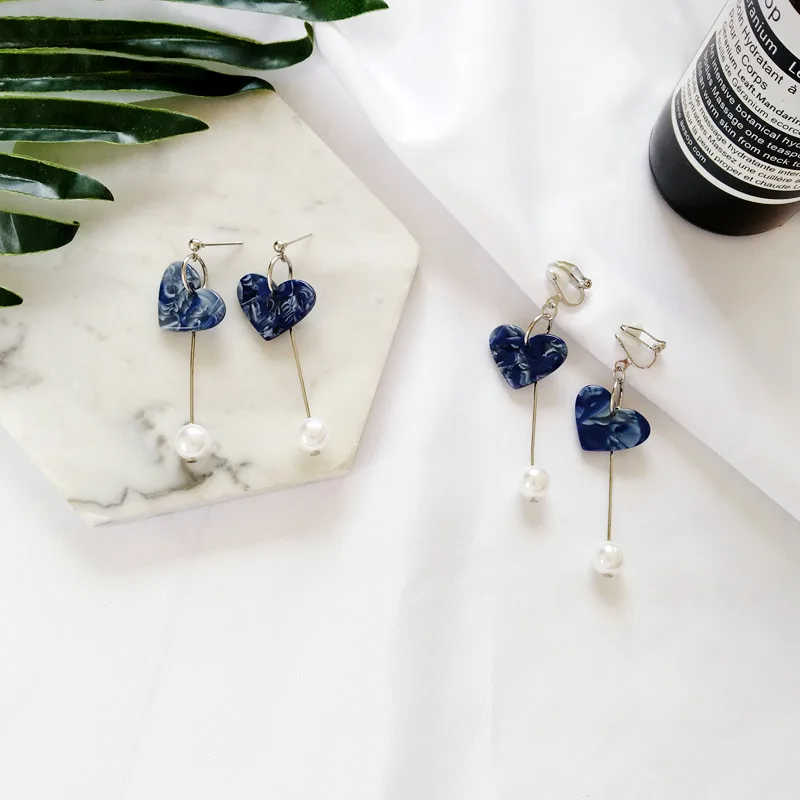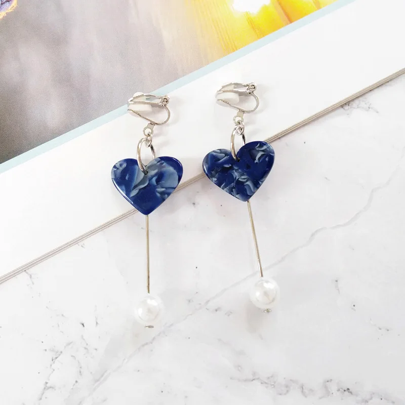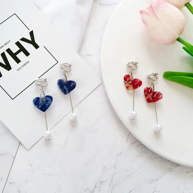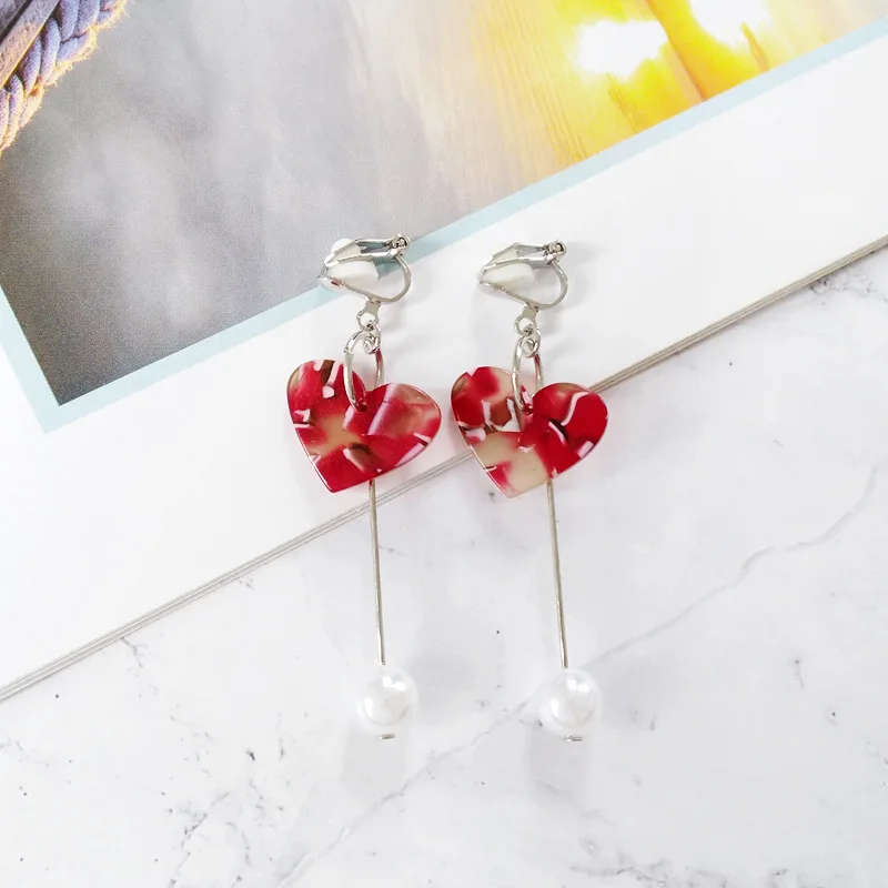 Decoration on earrings: Thread Line Long Pearl Heart Clip Earrings Non Piercing
