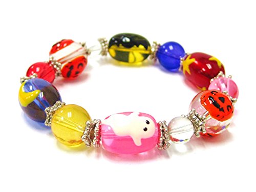 [Product Information]- 7.5 Inch Inner Stretch 11x13MM Oval 8 To 14MM Round Hand Painted Glass Beads Made Up A Beautiful Bracelet