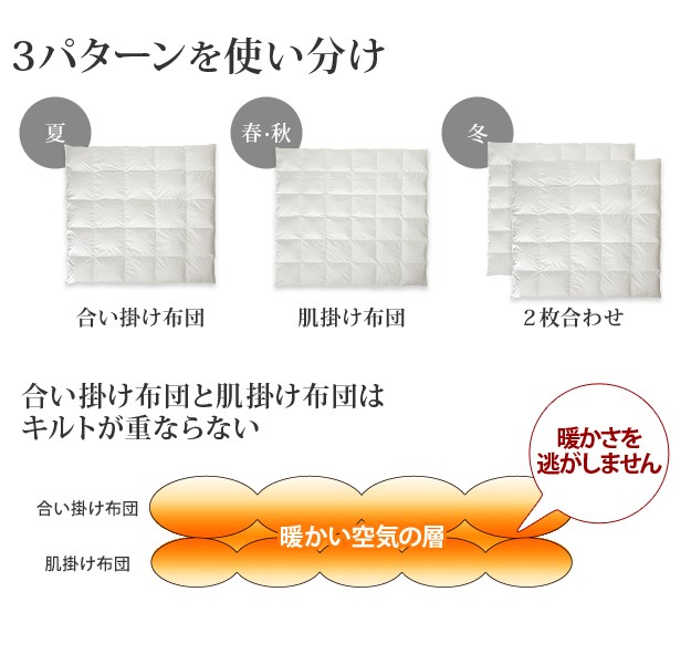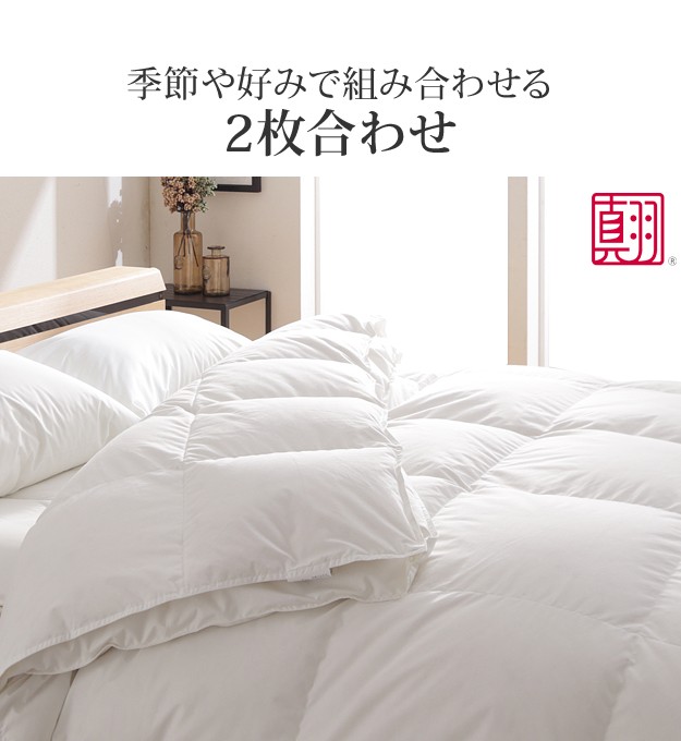 ●1年中使える機能的な2枚合わせの羽毛布団!掛け布団 クイーン 日本製 抗菌 防臭 国産