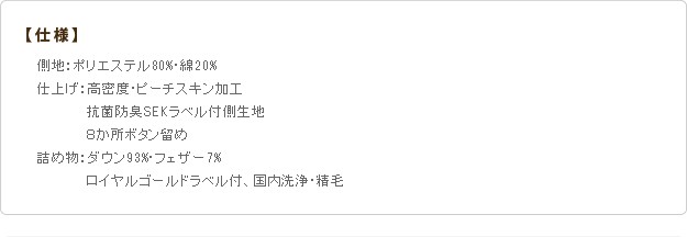 ●詰め物:ダウン93%、フェザー7%(国内洗浄・精毛)