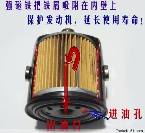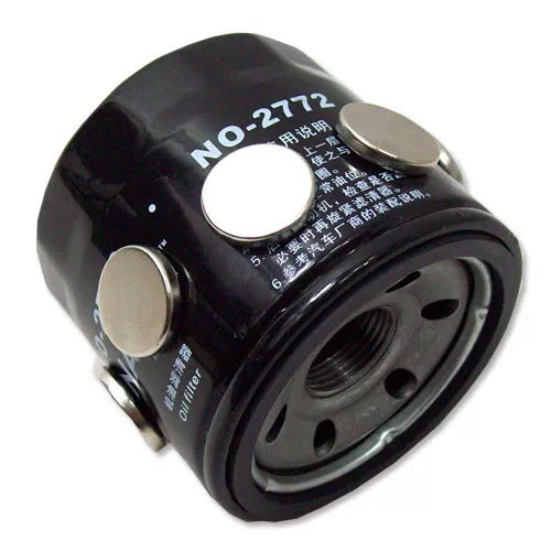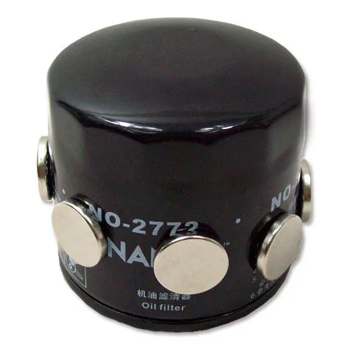 The 1 filter itself is assembled oil pollution, clean the filter of oil pan, put oil screw also has a magnet, (many novice easy to lose the magnetic core) but weak magnetism,nevertheless, I three thousand km running in period maintenance discharge waste oil,also see the area of the accumulation of a large number of metal particles. Wasproduced by strong magnet placed adsorption of metal particles in the filter on the idea;take these things with the old machine filter replacement filter can be to abandon.Through thinking, that is feasible and safe. The oil drainage screw also has a magnet,and in the head, strong magnet is placed in the filter shell, suction fine iron them alsodeposited on the filter, it is supposed to. Oil change interval, i.e. with the old machine filter to discard. A strong magnet should be small field; king of permanent magnetmagnetic strength can satisfy.