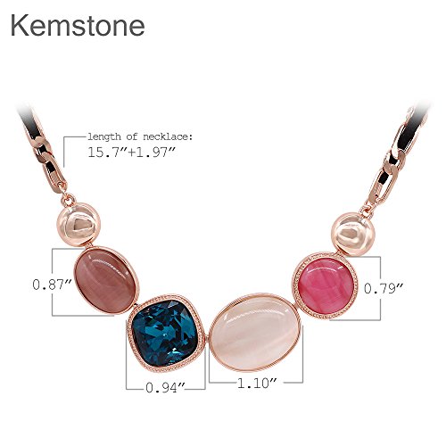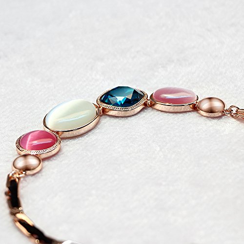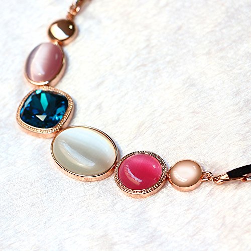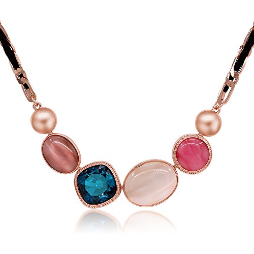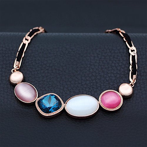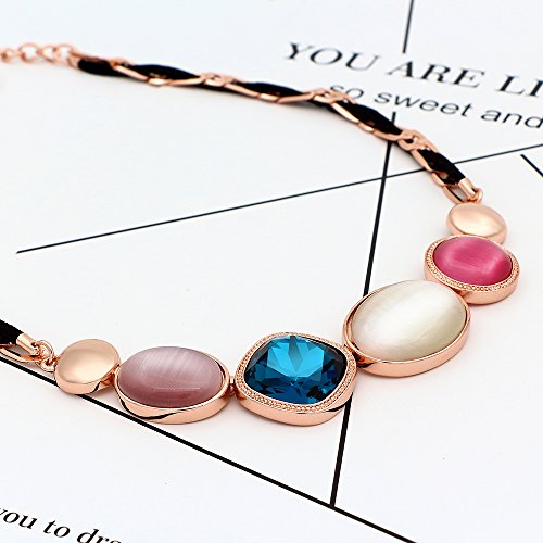 Crafted in rose gold metal and garnished with blue cubic zirconia and colorful opals, the necklace was given an extra sparkle that lighten up your look wonderfully. This nicely designed necklace is a perfect feminine touch to your outfit!