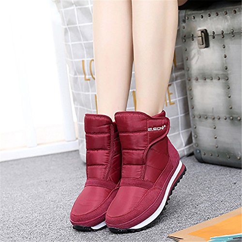 Binding : Apparel Product Description Below it will help us choose right size for shoes. Size Chart : Our brand shoes 5 B(M)US =American Women Size 5 US =Feet Length 8.94(Inches) =Feet Width 3.35(Inches) =Tag Size (CN) 36 Our brand shoes 6 B(M)US =American Women Size 6 US =Feet Length 9.13(Inches) =Feet Width 3.43(Inches) =Tag Size (CN) 37 Our brand shoes 7 B(M)US =American Women Size 7 US =Feet Length 9.33(Inches) =Feet Width 3.50(Inches) =Tag Size (CN) 38 Our brand shoes 7.5 B(M)US =American Women Size 7.5 US =Feet Length 9.53(Inches) =Feet Width 3.57(Inches) =Tag Size (CN) 39 Our brand shoes 8 B(M)US =American Women Size 8 US = 9.72Feet Length(Inches) =Feet Width 3.65(Inches) =Tag Size (CN) 40 Our brand shoes 9 B(M)US =American Women Size 9 US = 9.92Feet Length(Inches) =Feet Width 3.72(Inches) =Tag Size (CN) 41 Our brand shoes 10 B(M)US =American Women Size 10 US = 10.12Feet Length (Inches) =Feet Width 3.79(Inches) =Tag Size (CN) 42 Our brand shoes 11 B(M)US =American Women Size 11 US = 10.31Feet Length(Inches) =Feet Width 3.87(Inches) =Tag Size (CN) 43 Our brand shoes 12 B(M)US =American Women Size 12 US =Feet Length 10.51(Inches) =Feet Width 3.94(Inches) =Tag Size (CN) 44 Information? Shoe Type: Boots Toe Type: Round Toe Closure Type: Hook Loop Heel Type: Platform Heel Height: 2.5cm / 0.98 inch Gender: Female Occasion: Casual, Outdoor Season: Winter, Autumn Color: Black, Navy, Wine Red, Light Blue, Rose, Grey Material: Upper Material: Waterproof Cloth Outsole Material: Rubber Package included: 1 x pair of shoes(without box)