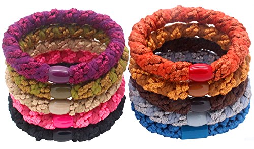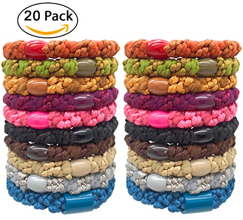 -. Feature : Pack of 20 soft no damage pony tail holders,for all hair types,perfect for long or thick hair / Size (Not Stretch): 2.0" in diameter;Ponytail tie circumference = 8" / Hold thick hair perfectly! The elastics circumference is 8" and can be comfortably stretched to 25".The size is adjustable which suitable for most people to use,easy up and easy off. NO DENTS in your hair at all / Perfect for yoga,running,cycling,ball games and other sports,or quick fix before work.Great gift for runners,swimmers,workout enthusiasts,professional / Strechy and ultra soft,strong and durable,with fine touch,great idea for girls to do hair styling. Multi-purpose,not only a pony tail tie,they accessorize as a bracelet,a cable tie,a key chain