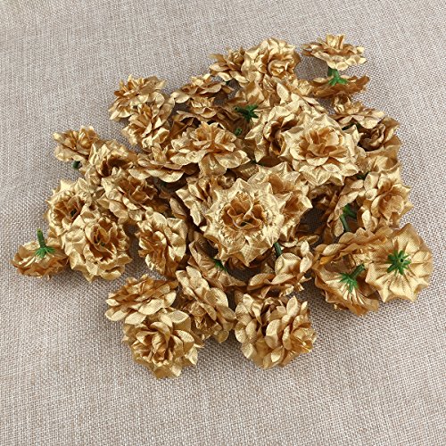 Tinksky Silk Rose Flower Heads for Hat Clothes Album Embellishment,Pack of 50 (Golden)
